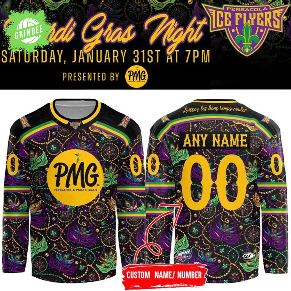 Limited Edition Pensacola Ice Flyers 2026 Mardi Gras Night Jersey