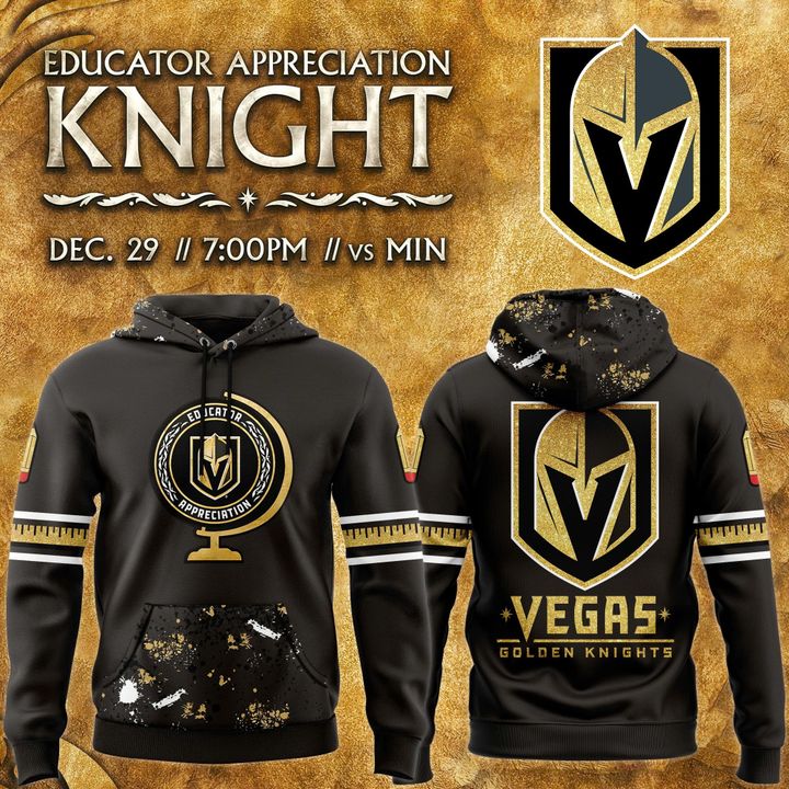 The Vegas Golden Knights 2025 Educator Appreciation Night Hoodie celebrates the dedication of educators while showcasing team spirit. Crafted for comfort and style, this hoodie is perfect for cool game nights or casual outings. By purchasing, you support education and embrace community pride. Wear the Vegas Golden Knights 2025 Educator Appreciation Night Hoodie with pride!